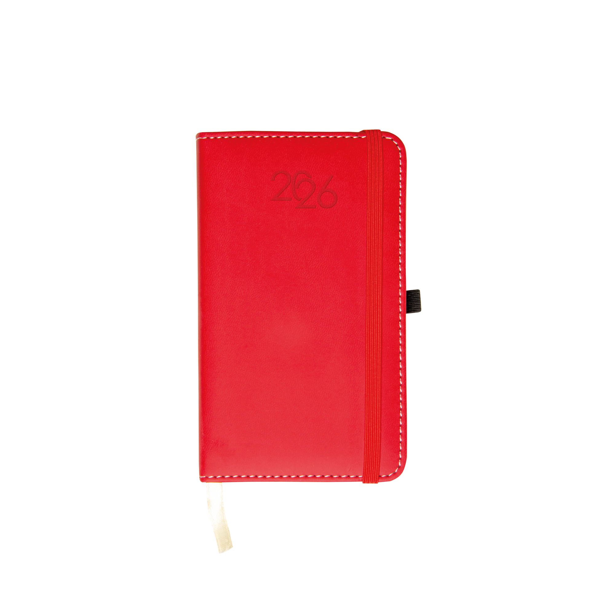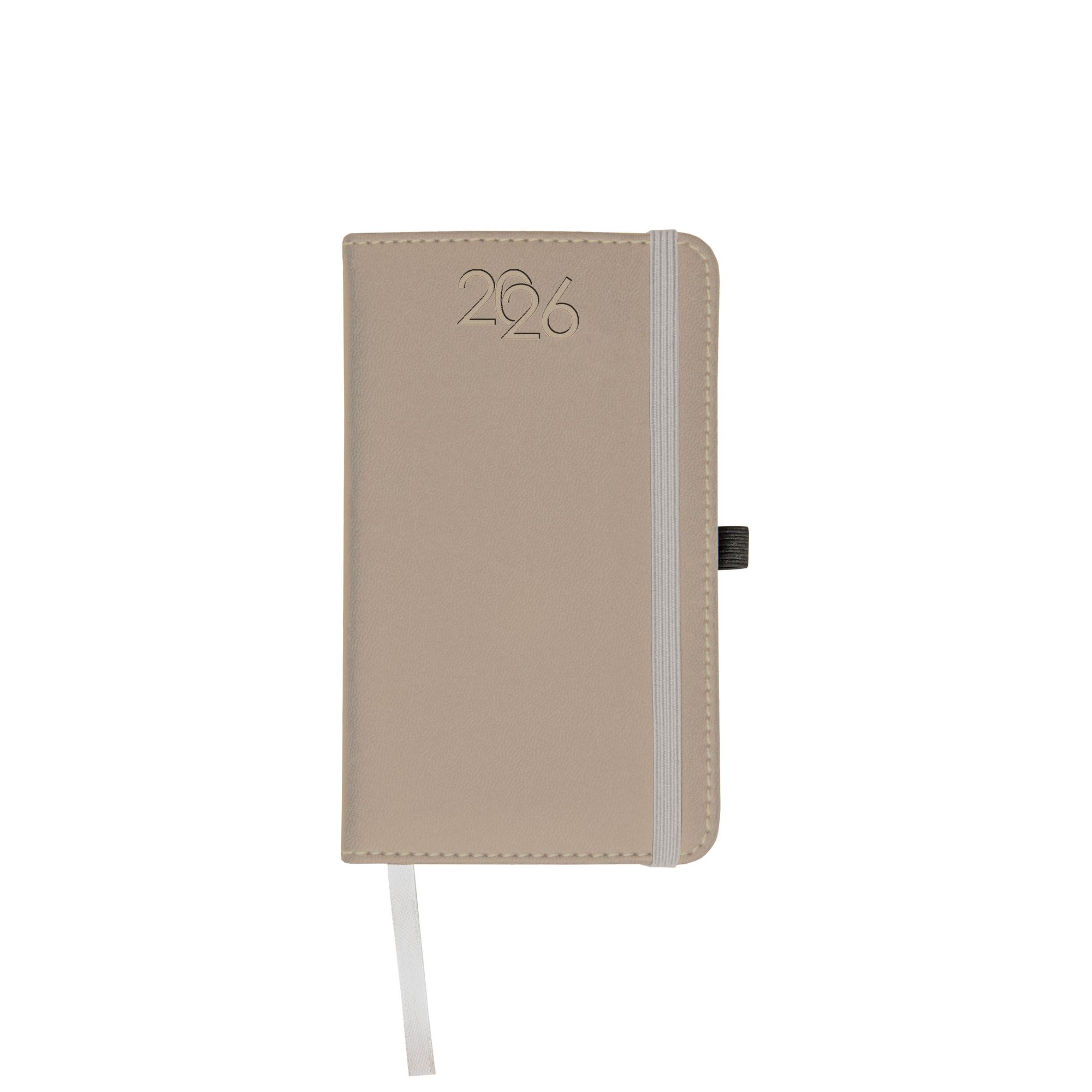 Agenda tascabile settimanale 2026, copertina rigida in PU termovirante con impuntura perimetrale. Con elastico per la chiusura e anello porta penna. 12 mesi. 64 pagine in carta bianca da 70 g/m2. Copertina personalizzabile.