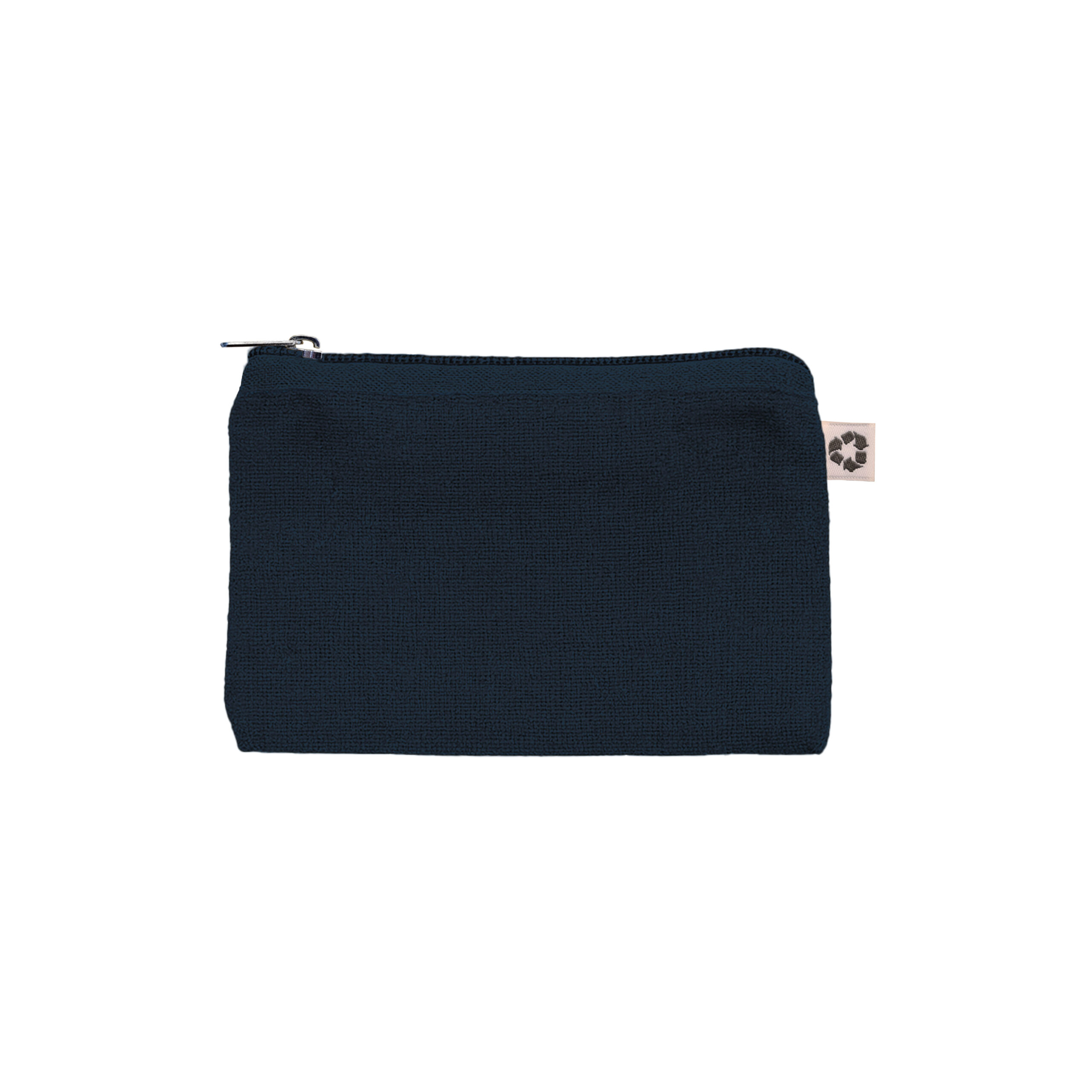 Beauty in cotone riciclato 220 g/m² con anello portachiavi interno estraibile e chiusura con zip. È certificato GRS (Global Recycled Standard).