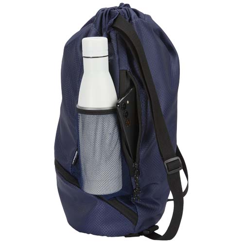 La borsa con cordoncino Nomad è realizzata in tessuto ripstop riciclato certificato GRS con finitura idrorepellente, una fodera in PET riciclato certificato GRS ed elementi catarifrangenti. È stata progettata per le persone con uno stile di vita attivo ed è adatto per gli esercizi quotidiani e le attività sportive. La borsa è dotata di un ampio scomparto principale che può contenere indumenti, un asciugamano o persino un pallone da basket. Uno scomparto inferiore separato consente di riporre le scarpe o gli abiti usati separati dagli altri oggetti. La borsa comprende inoltre due tasche laterali in rete con dettagli catarifrangenti, una tasca nascosta con cerniera per gli oggetti di valore e spallacci regolabili per un comodo trasporto. Ripstop Poliestere riciclato certificato GRS, 420D.