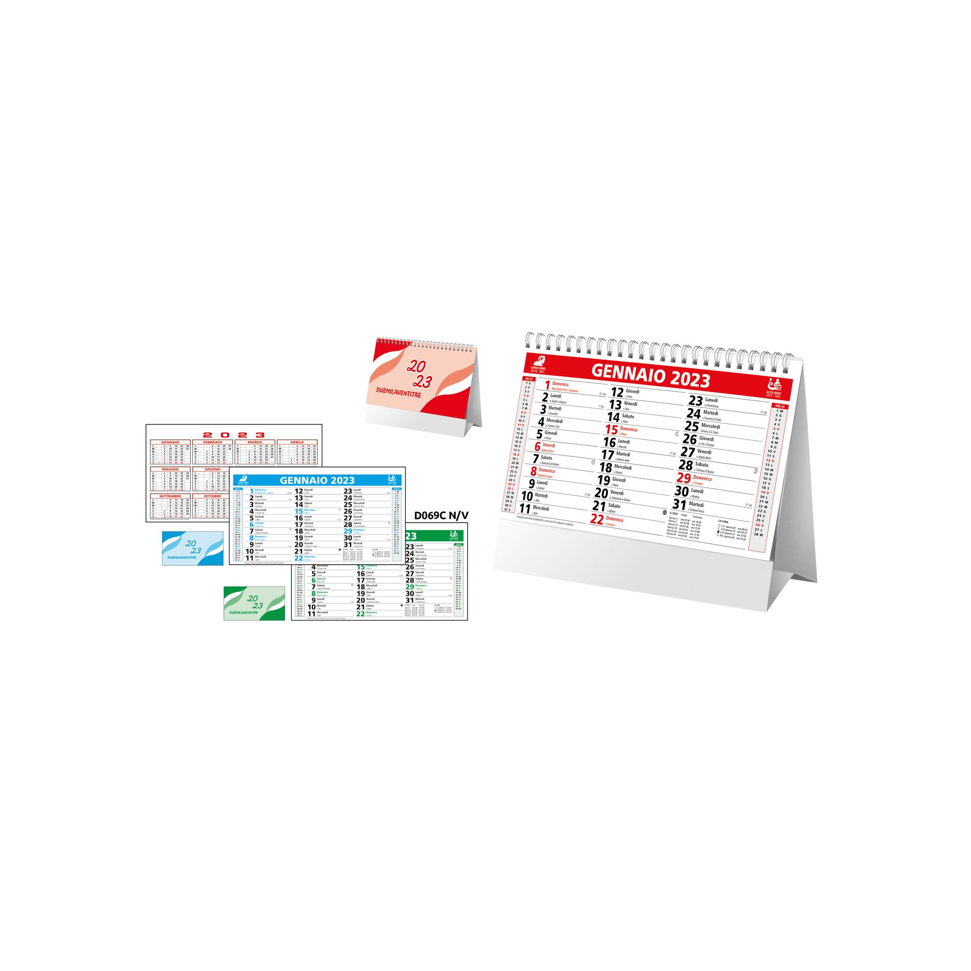 Calendario 2026 da tavolo mensile bicolore, 13 fogli su carta patinata opaca, spiralato, tabella 2027 in ultima pagina