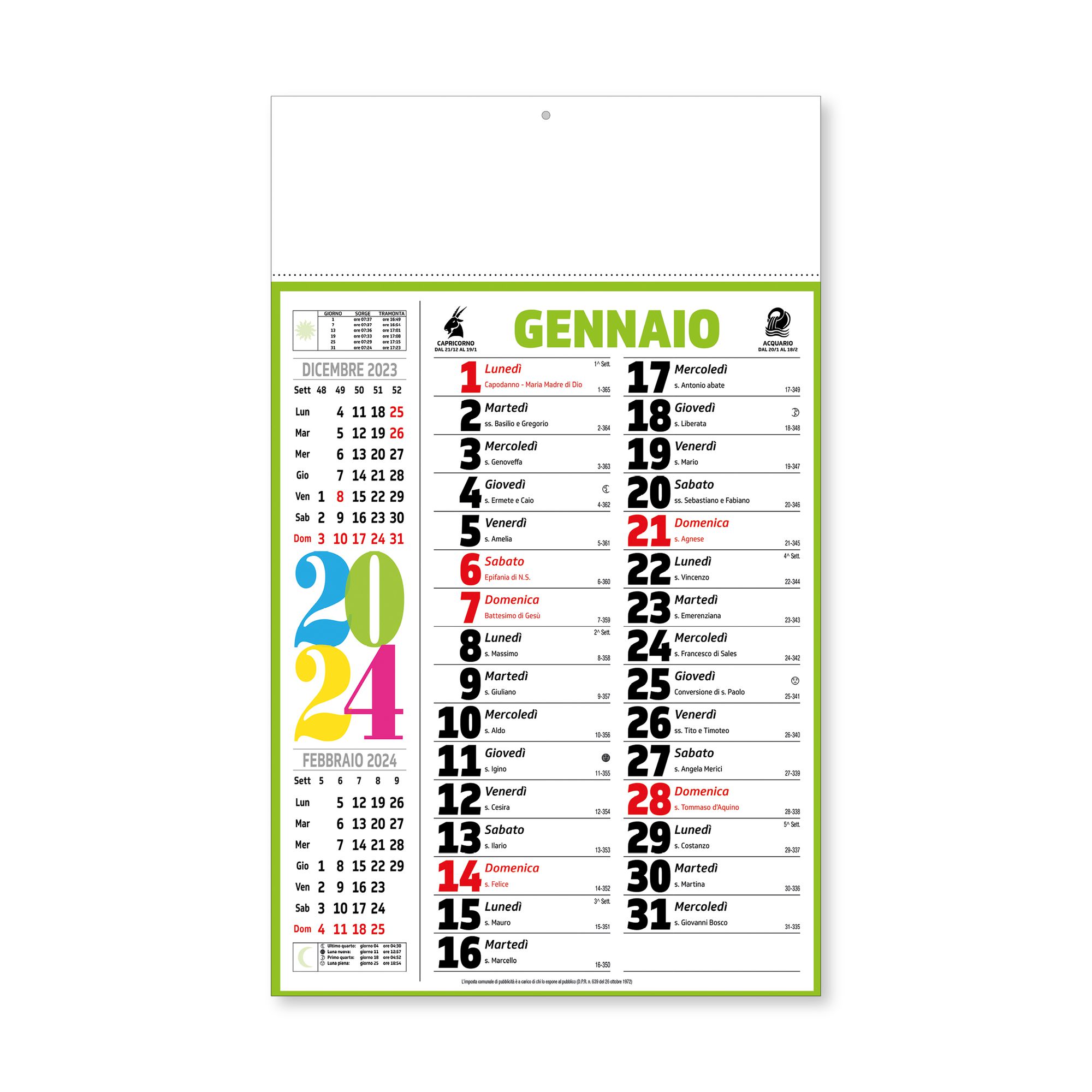Calendario 2026 da muro mensile multicolore, 12 fogli, su carta patinata, termosaldato