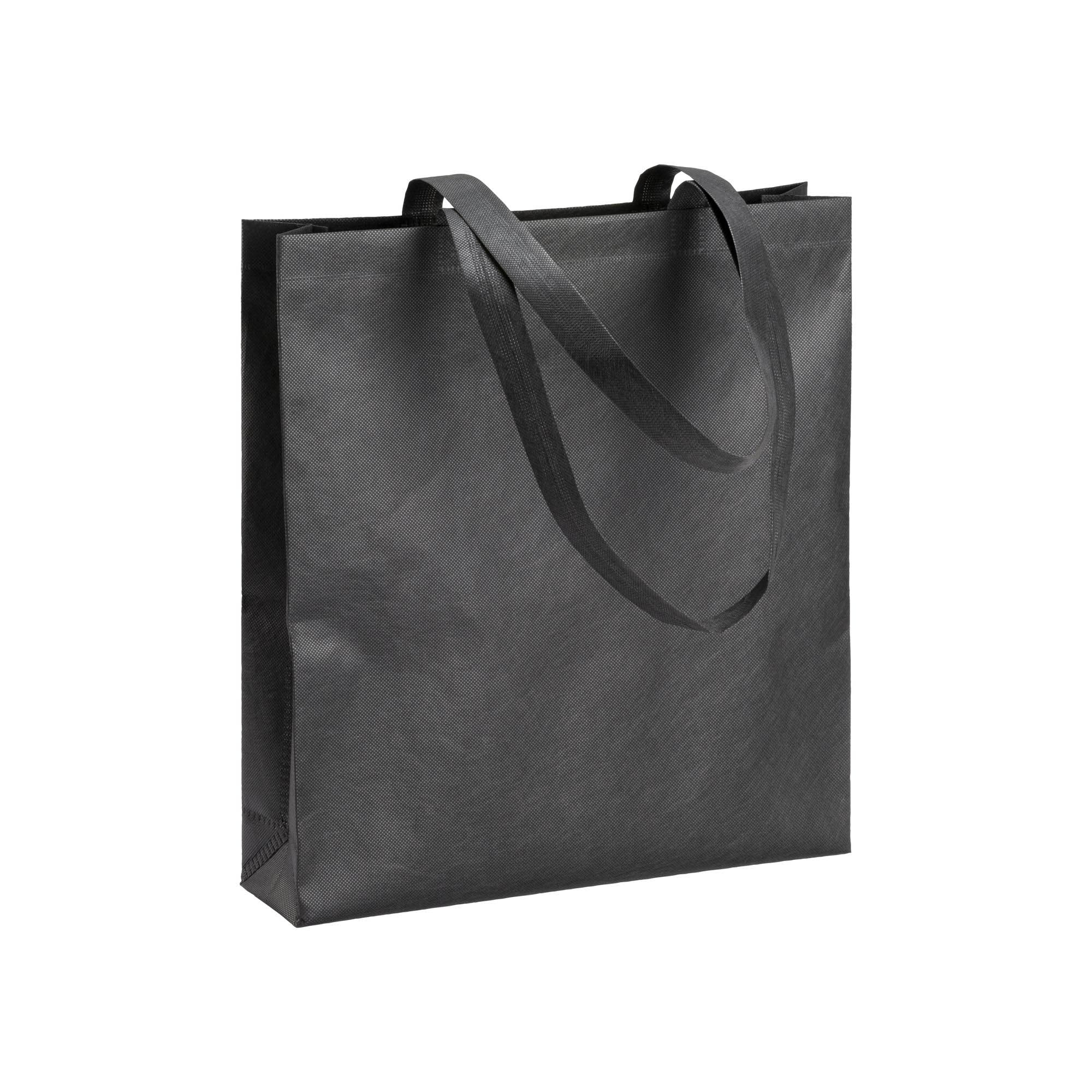 Borsa shopper in PET riciclato (TNT R-PET 80 g/m2) termosaldato, manici lunghi e soffietto. Il colore bianco è adatto per la stampa in sublimazione