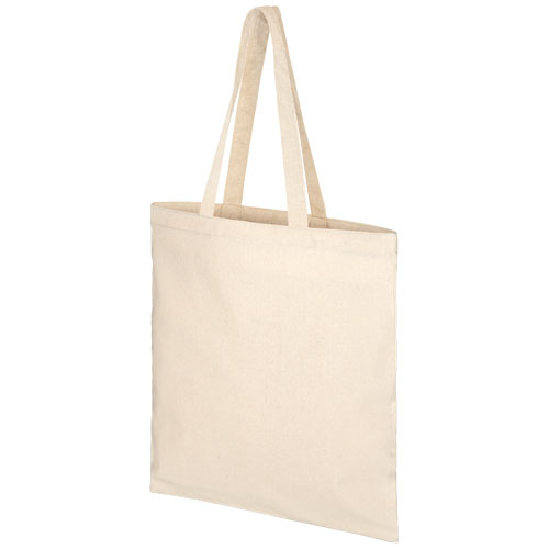Tote bag realizzata in tessuto riciclato da 210 g/m² composto da cotone e poliestere. Il cotone riciclato è prodotto da rifiuti pre-consumo generati dalle fabbriche tessili durante il processo di taglio. Questa borsa può essere piegata facilmente per occupare pochissimo spazio. L’accessorio perfetto per svariate attività: spesa, escursioni, progetti artigianali… Sono possibili piccole variazioni di colore nel prodotto effettivo a causa della natura del processo di produzione. Questa caratteristica sottolinea un aspetto più autentico. Manico morbido da 31 cm. Cotone riciclato, 210 g/m2, Poliestere riciclato.